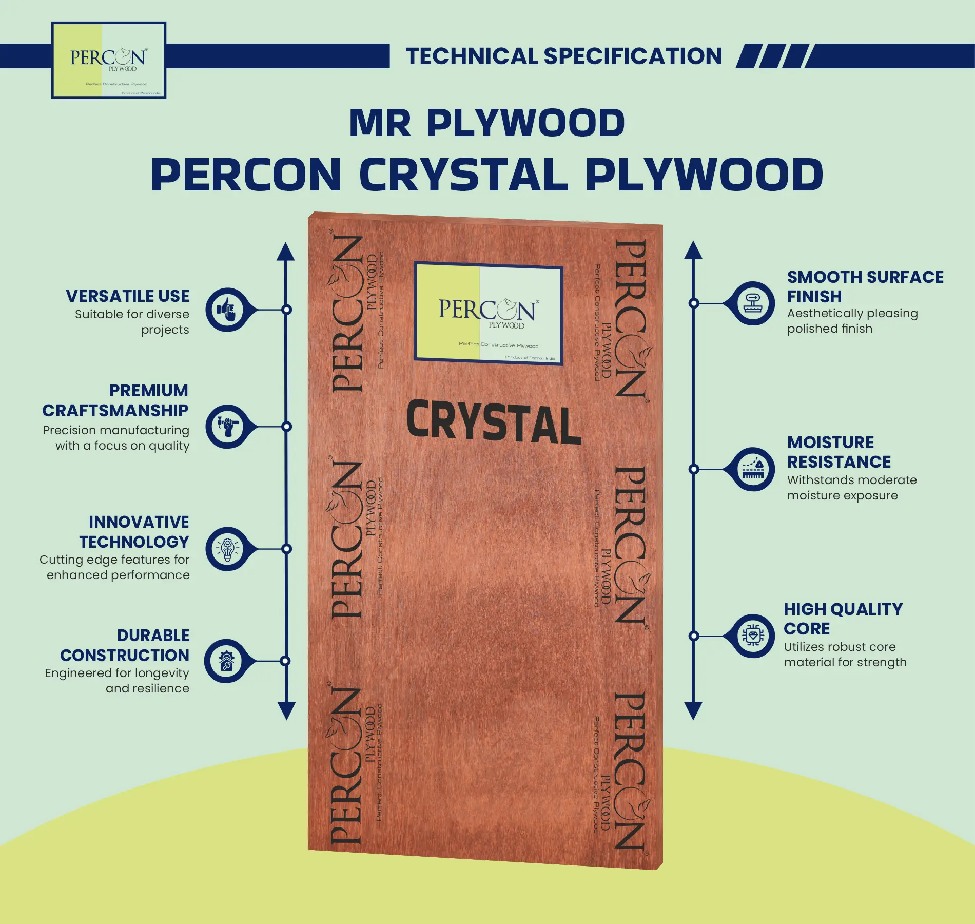 Percon Crystal Plywood: MR Plywood meets IS 303 standards.