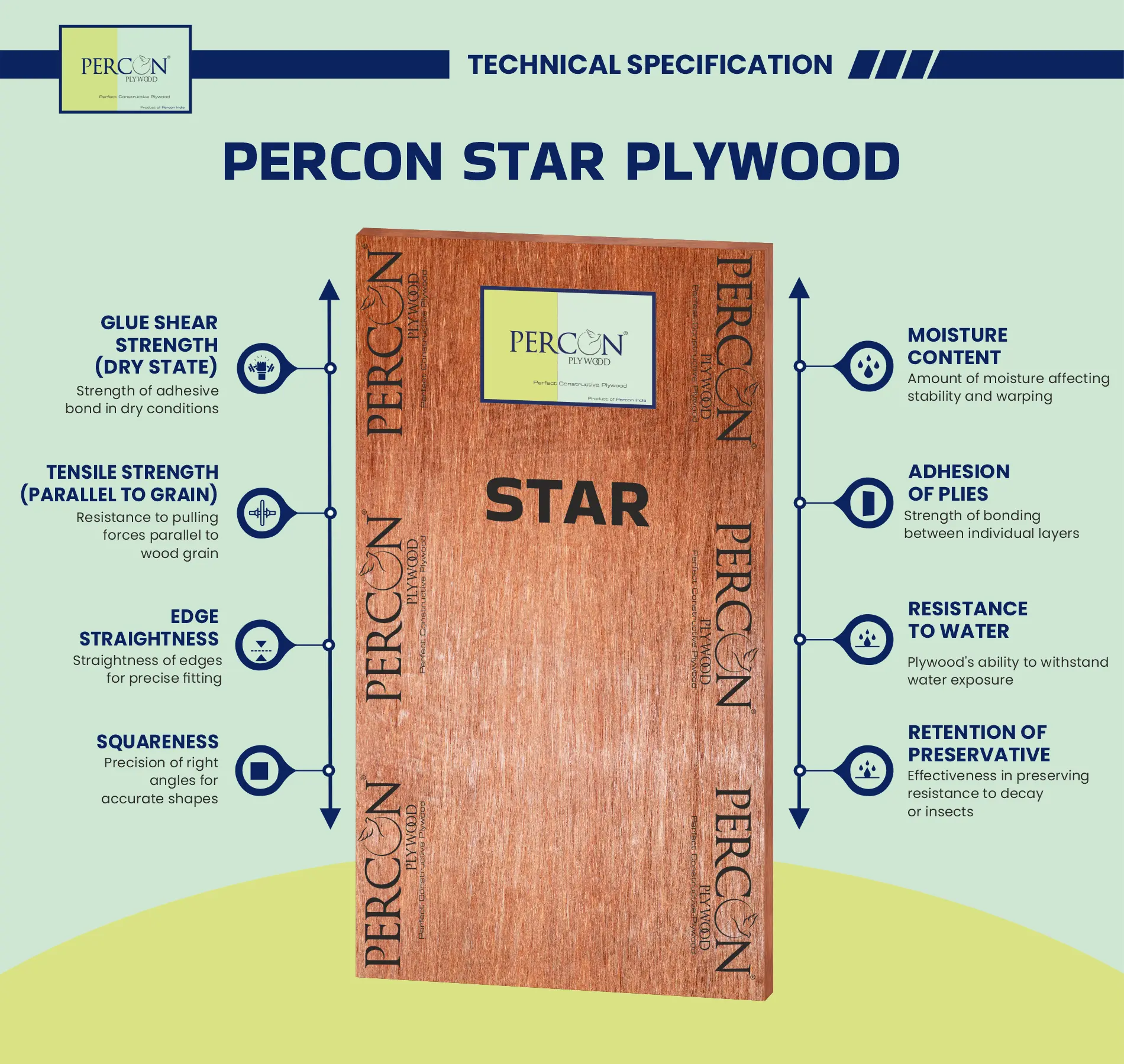 Percon Star Plywood: Water Resistant meets IS 303 standards.